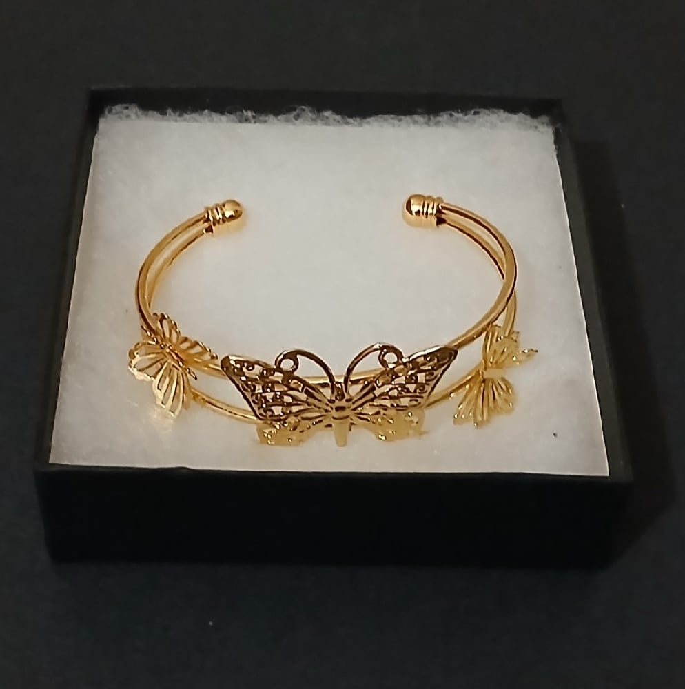 • Real 18k Gold Plated Butterfly Open Fashion Bangle.