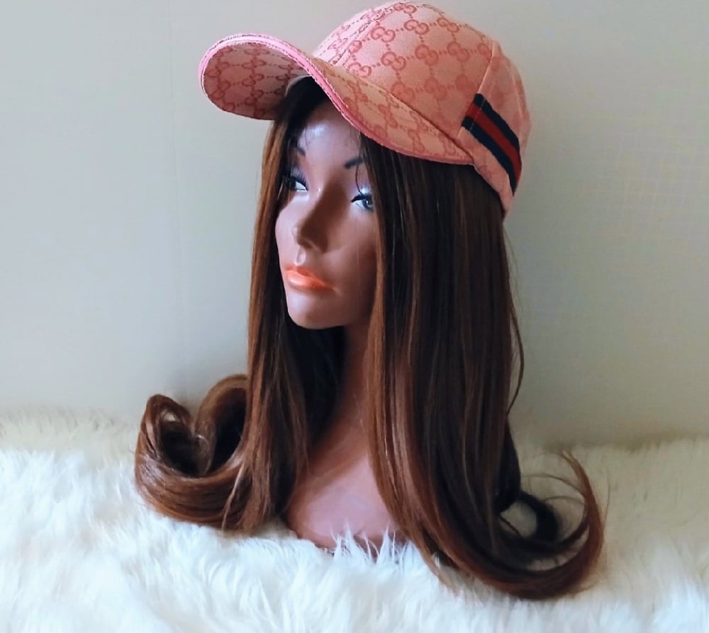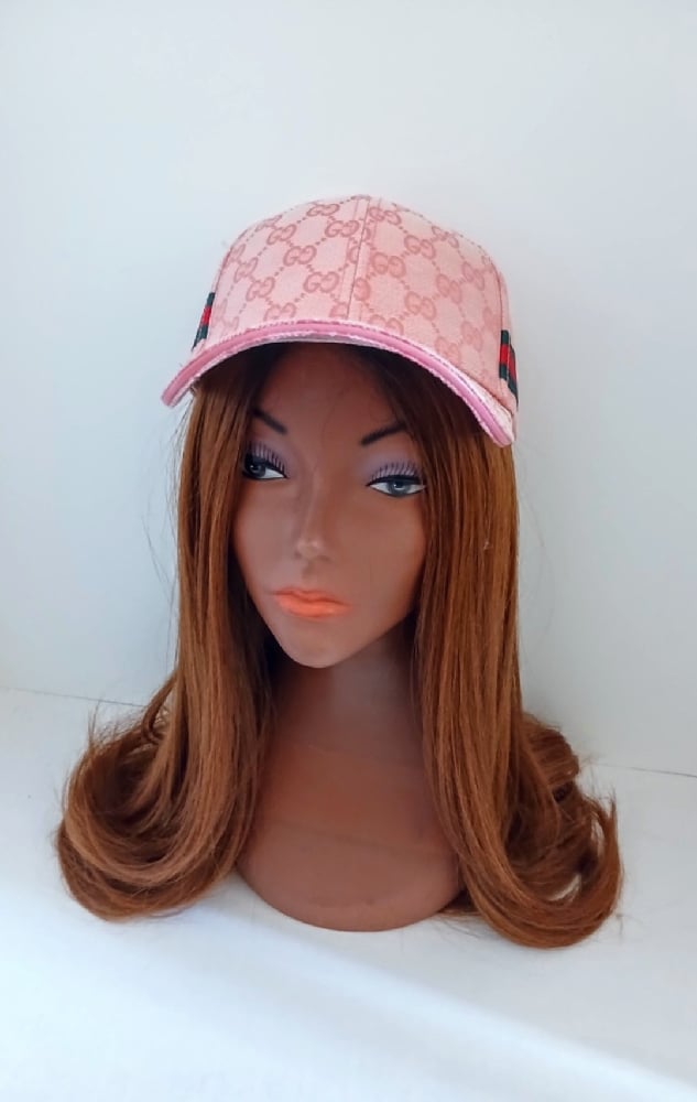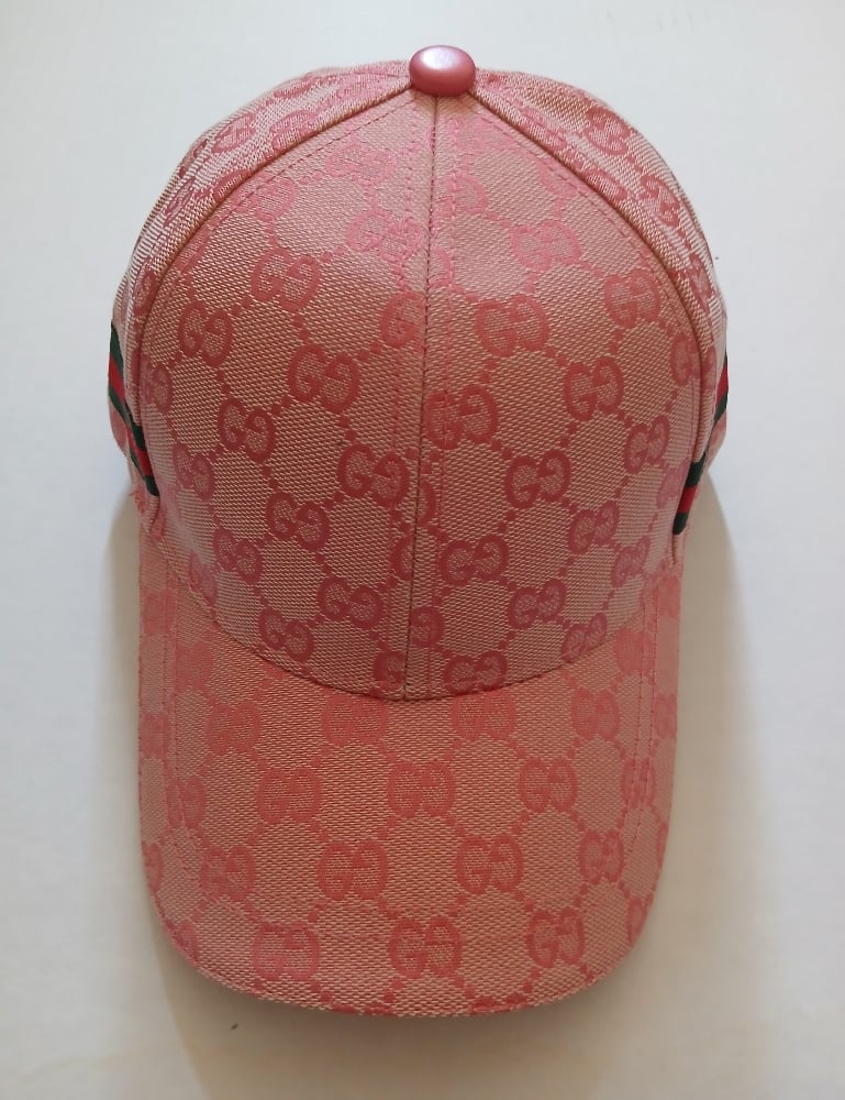 • Pink Gucci Fashion Hat With Green and Red Striped Sides.