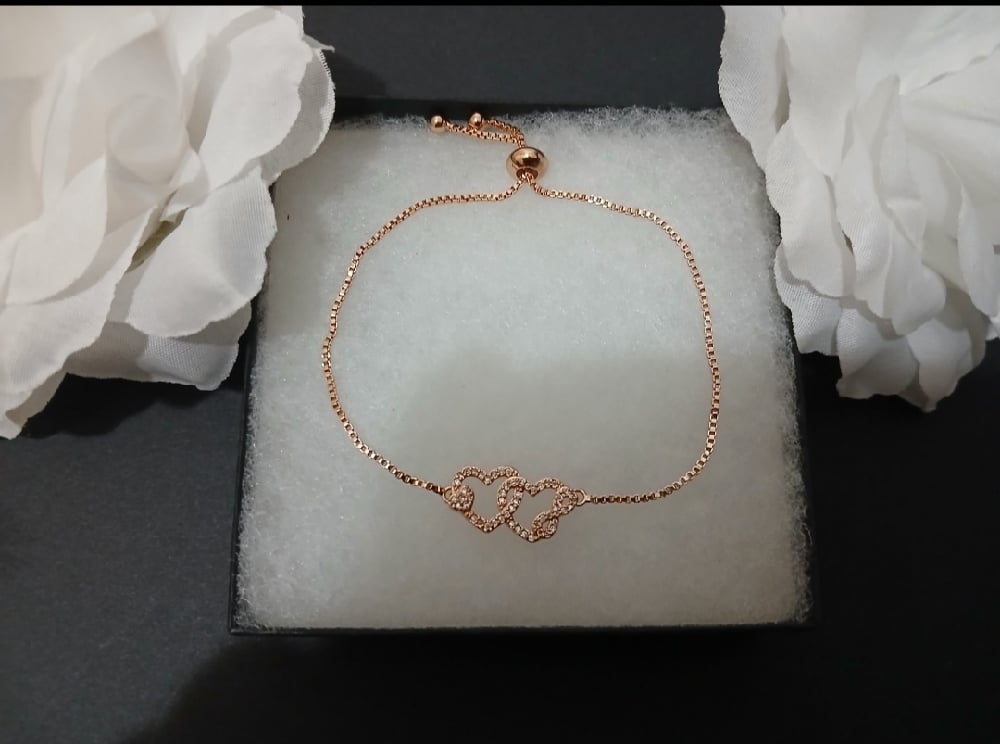 • Rose Gold Cubic Zarconia Interlocking Heart With Infinity Symbol .